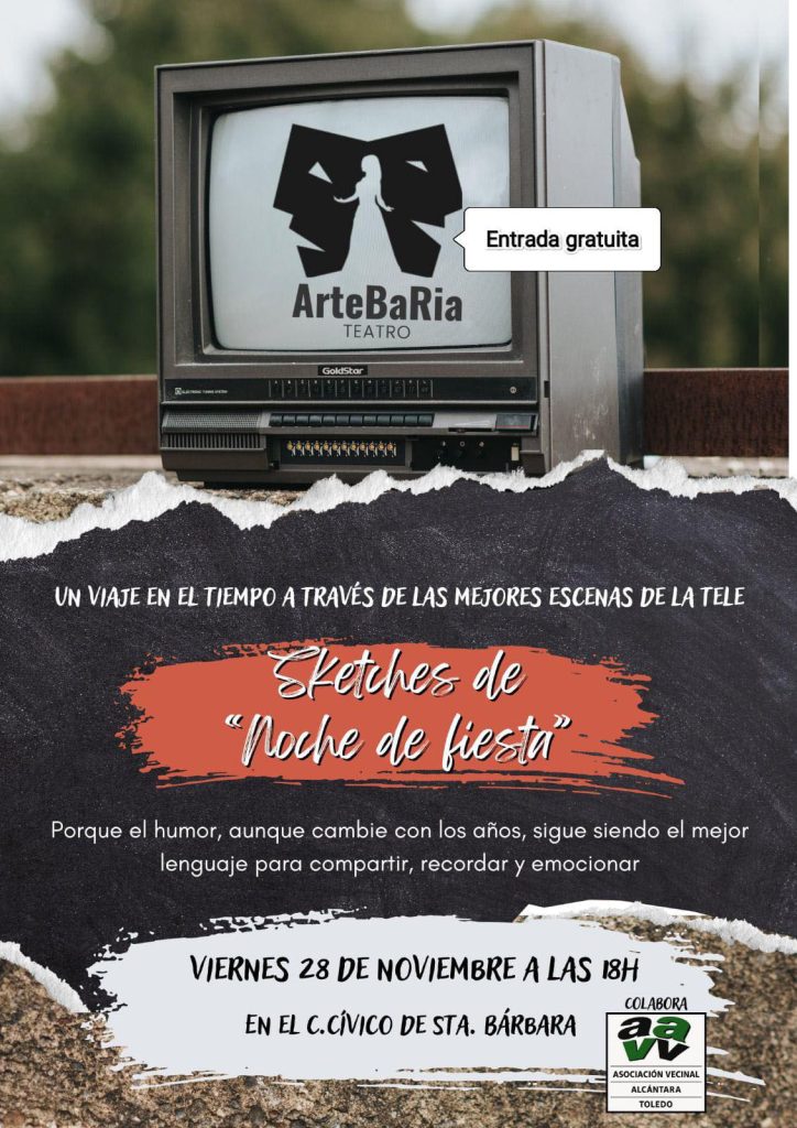 ArteBaRia presenta: Un viaje al humor con los sketches televisivos de “Noche de Fiesta” Os invitamos a dar un pequeño salto en el tiempo, concretamente entre los años 1999 y 2004, una etapa inolvidable para el humor televisivo en España. Con estos sketches queremos rendir homenaje a aquellos programas que marcaron una época: escenas disparatadas, […]